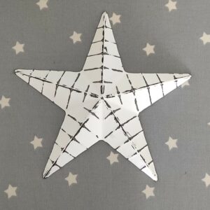 These whitewashed metal barn stars will come with distressed markings and will have their own individual character. There may be small marks and small scratches to the paint as they are made to be distressed with an aged appearance.